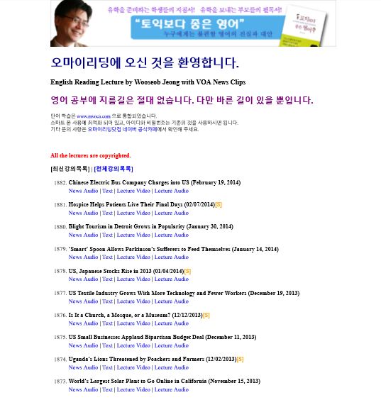 언제나 강조하는 것이지만, 지문도 지문이지만, 그 지문을 어떻게 원어민이 읽느냐를 직접 듣는 것이 더 중요합니다. 청취와 독해를 동시에 해결해야 하는 것이고, 이를 위해 제 강의들이 도움이 되리라 생각합니다.